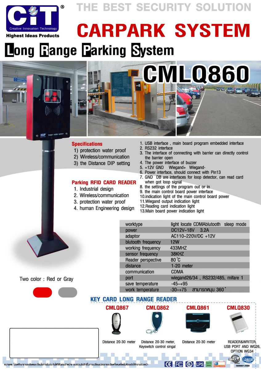 เครื่องอ่านบัตรคลื่นความถี่ระยะไกล( RFID Longer Card Reader ) CIT CMLQ 860 เป็นเครื่องอ่านบัตรคลื่นความถี่ระยะไกล