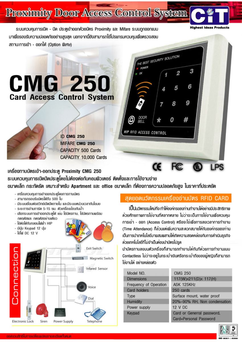 ชุดเครื่องทาบบัตร-ควบคุมประตู CMG250พร้อมอุปกรณ์และค่าติดตั้ง ราคา 6,900 เท่านั้น!! |