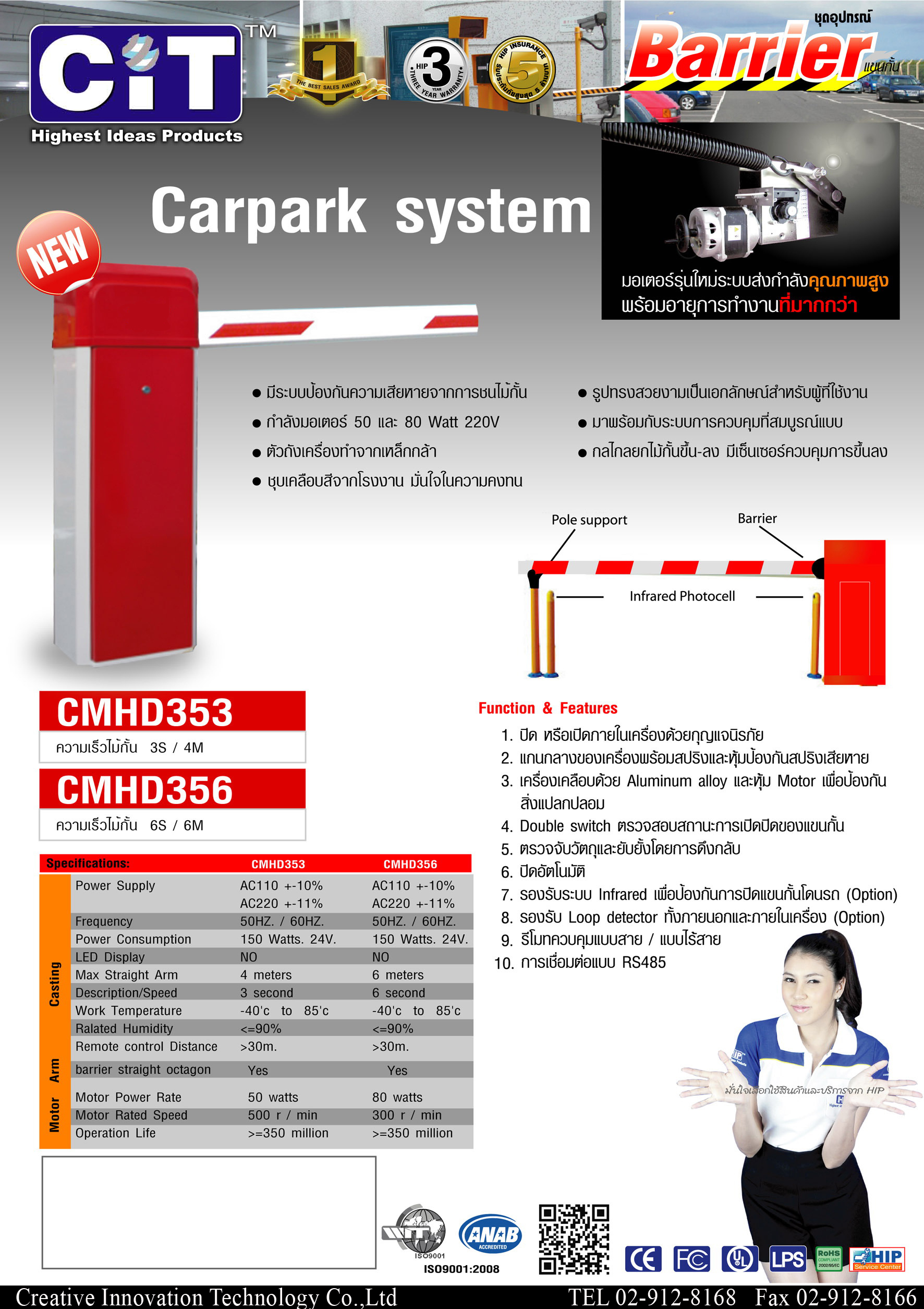 สามารถเชื่อมต่อกับระบบเครื่องทาบบัตรระยะใกล้-ไกลได้ ความยาวของแขนกั้น 3-6 เมตร รองรับเวลาที่ใช้เปิด-ปิด 4 วินาที รองรับการเปิด-ปิด 100,000ครั้ง อายุการใช้งานนาน การบำรุงรักษาง่าย