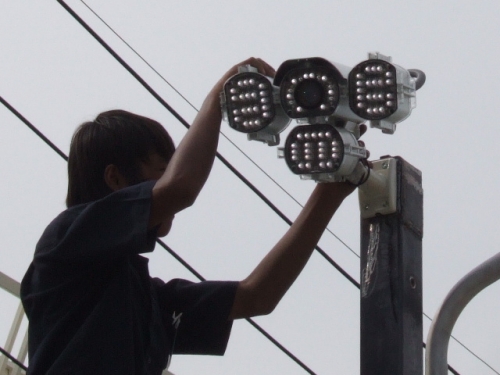 งานเชื่อมเสาเข้ากับสะพานเหล็กเพื่อติดตั้งกล้องขนาดใหญ่ อินฟาร์เรด ยิงได้ใกลร่วม 100 เมตร