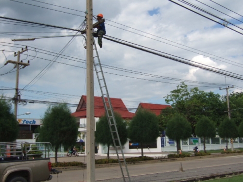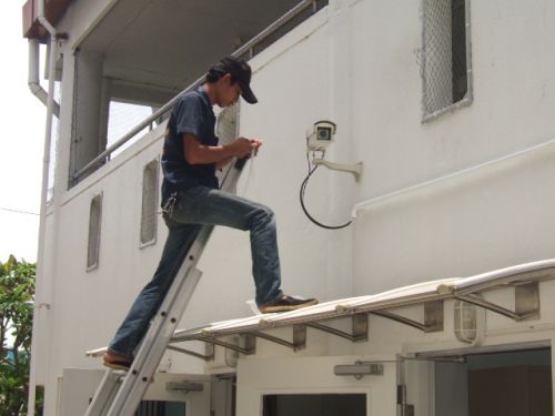 งานติดตั้งสายเคเบิ้ลสลิง CAT 5E เชื่อมระบบกล้องระหว่าง 2 โรงงานเข้าด้วยกัน